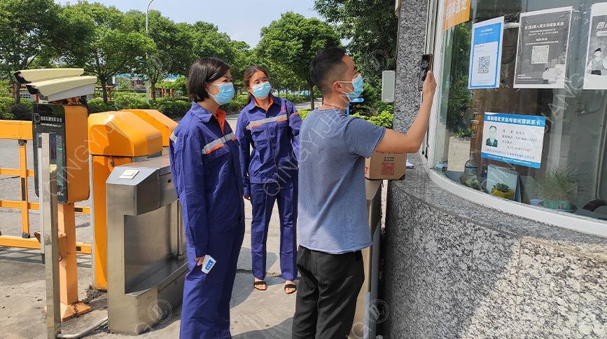 figure3 Volunteers of QYJSSA checking the temperature of outsiders at the FUBAO Plant gate